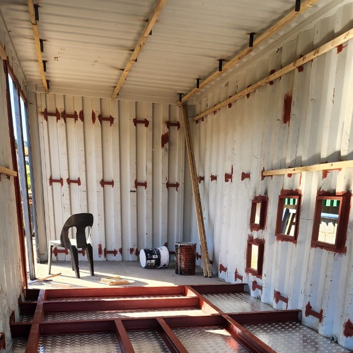 The client began preparing the container by working on the cutouts, frame, and piping. Cutouts are openings in the container for equipment installation, such as air conditioning units or electrical panels. The frame provides structural support for the equipment, and the piping infrastructure enables fluid or gas transfer between different parts of the system. Container preparation is critical for creating an efficient containerized system.