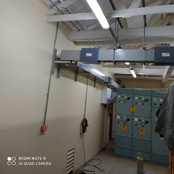 The encapsulated ducted busbar installed from the transformer room to the motor control center
